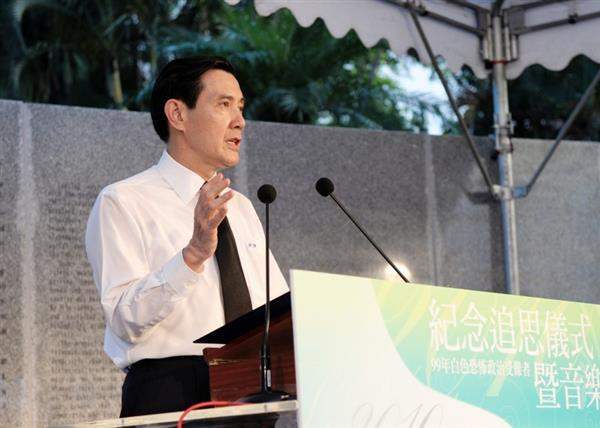 馬英九總統今天下午出席99年白色恐怖政治受難者紀念追思儀式暨音樂會,並頒發回復名譽證書,代表政府向白色恐怖受難者及家屬們表達最誠摯的歉意與慰問,同時重申持續推動維護人權及司法改革之決心。
