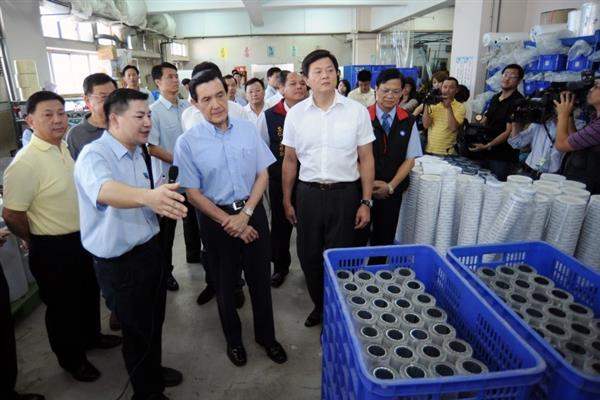 馬英九總統今天上午在總統府副秘書長賴峰偉、經濟部長施顏祥、台北縣長周錫瑋陪同下,前往台北縣五股鄉淳靖公司及三重市復盛公司,參觀工廠運作情形,隨後並與業者及其協力廠商座談,對台灣中小企業展現的優異技術與活力,以及業界對「兩岸經濟協議」(ECFA)的支持,表示高度肯定與感謝之意。