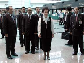 呂副總統秀蓮女士今天上午前往桃園中正國際機場,除聽取民航局有關「二期航廈後續工程」及「客貨運園區施工、招商進度」簡報外,並實地視察二期航廈旅客動線、自動電車系統及客貨運園區工程基地,以了解實際施工的進度。