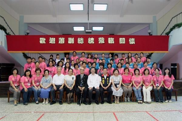 蕭萬長副總統今天下午前往新竹縣參訪,在邱鏡淳縣長、財團法人臺灣省私立香園紀念教養院創辦人蔡永勳董事長及林美雪院長等人陪同下參觀該教養院湖口院區,並致贈捐助金,對該教養院長期致力推動扶助身心障礙者及弱勢家庭,表示肯定與感謝之意。