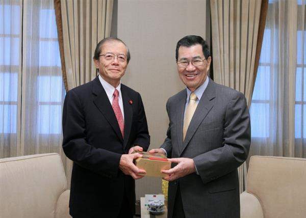 日本前眾議員愛知和男及眾議員山本幸三等一行,上午由亞東關係協會秘書長陳調和、日本駐台代表今井正(Imai Tadashi)陪同,前來總統府晉見副總統,外交部次長侯清山也在座。
