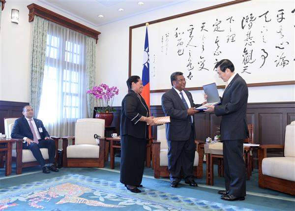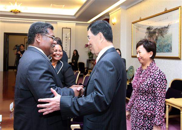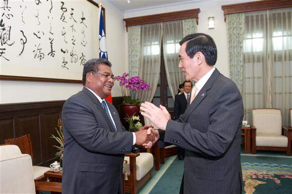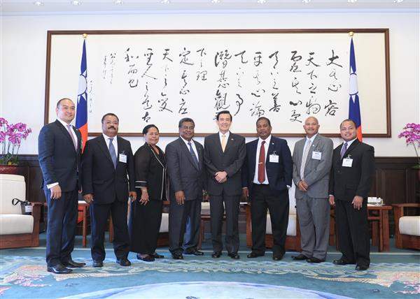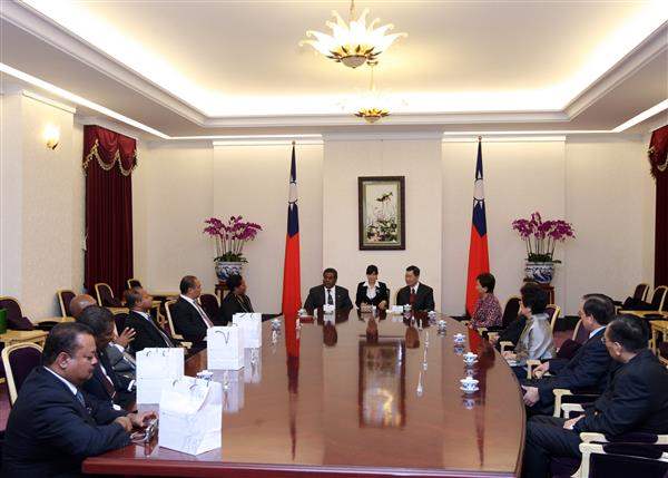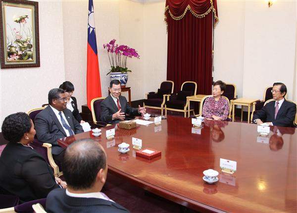 馬英九總統今天下午在總統府接見帛琉共和國副總統兼財政部長馬瑞爾(Kerai Mariur)伉儷,代表我國政府與人民表達誠摯歡迎與謝忱。