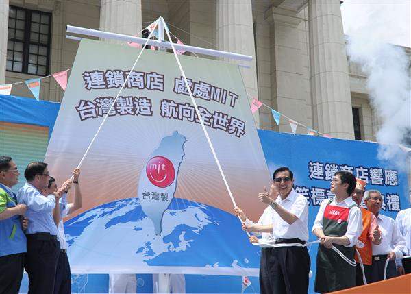馬英九總統今天上午出席「連鎖商店響應MIT微笑標章啟動典禮」,肯定經濟部推動「台灣製產品MIT微笑標章品質驗證制度」,並期盼大家一起努力,讓台灣好的產品不但國人可以享受,也能向外拓展銷售。