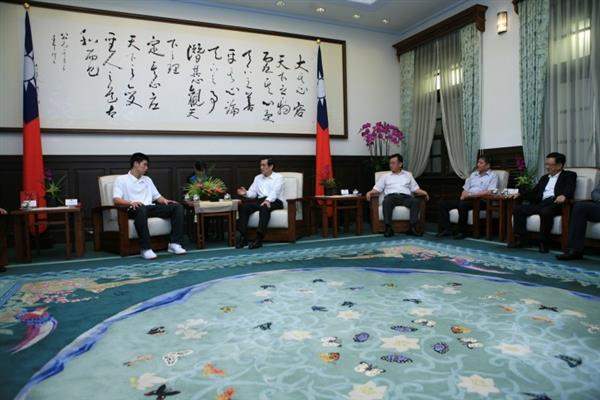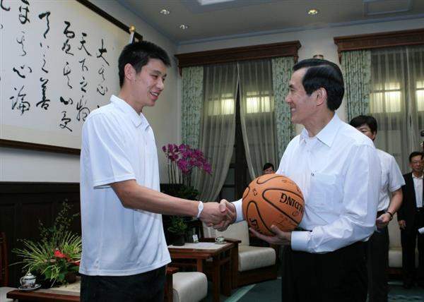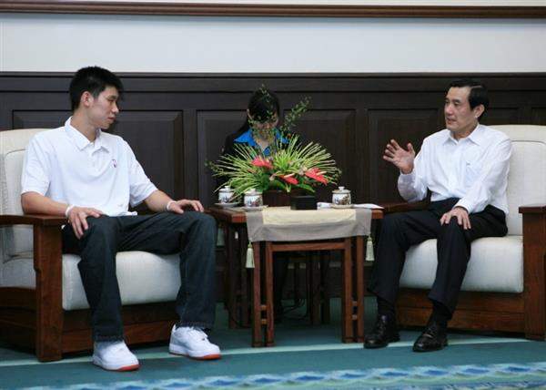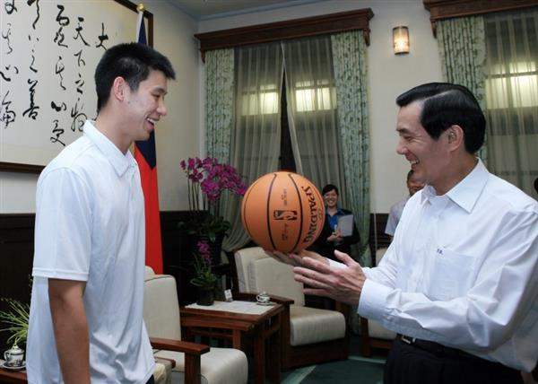 馬英九總統今天下午在總統府接見美國職籃NBA球員林書豪及其家人,祝賀他成為首位榮登世界籃球殿堂的台灣子弟。