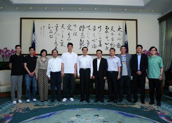 林書豪及其家人下午由行政院體委會副主任委員陳顯宗陪同,前來總統府晉見總統,總統府副秘書長賴峰偉也在座。