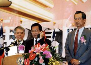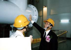 陳總統水扁先生今天上午參加台南科學園區南科超高壓變電所竣工典禮,以無線電指揮按鈕通電及視察變電所內相關設施,並致詞。