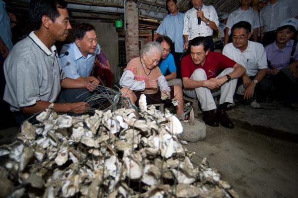 馬英九總統今天下午前往台南縣七股鄉訪視農村再生培根計畫-龍山社區及虱目魚養殖業。