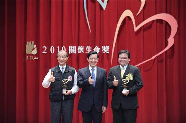 馬英九總統今天下午出席「法鼓山2010關懷生命獎頒獎典禮」,分別頒發證書及獎座給榮獲「八八水災救援重建特別獎」的中華民國紅十字總會及丁國政先生,並盼藉由舉辦這類活動激勵社會人心。
