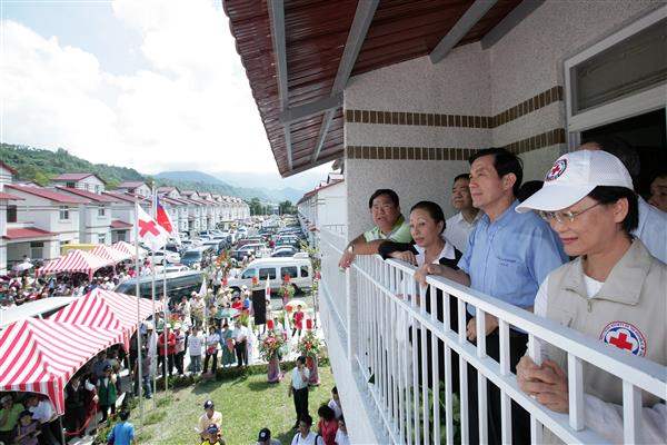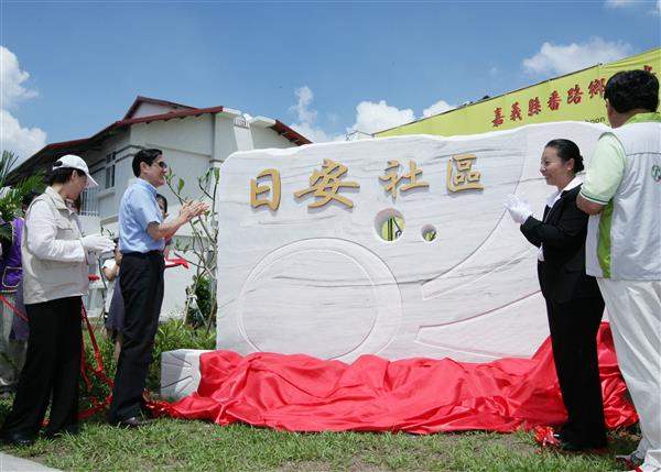 總統期許中央、地方與民間合力,為重建台灣而努力,致詞完畢後並見證嘉義縣長張花冠、紅十字會總會副會長王清峰與住民代表簽約及頒發建築物所有權狀,隨後,總統親自頒贈居民入住鑰匙,為日安社區及紅十字會社區與生活重建工作站揭牌。