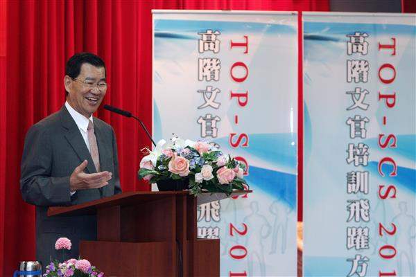 蕭萬長副總統今天上午前往國家文官學院為高階文官飛躍計畫訓練課程,以「當代領導典範學習」為題發表演說。
