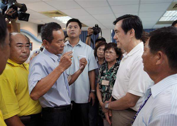 隨後,總統赴永安鄉視察養殖漁塭受災情形,並在永安區漁會與養殖業者座談聽取心聲。總統說,一個多月前他很高興地到此地探訪因兩岸簽定ECFA而受惠的石斑魚業者,但今天則懷著沈重的心情來到這裏,希望能協助漁民早日完成重建工作。