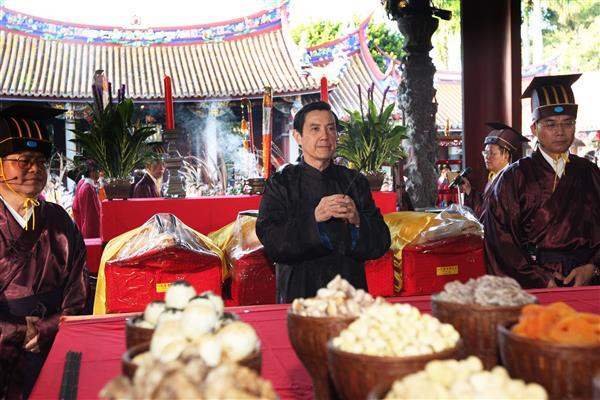 馬英九總統今天上午參加在台北市孔廟舉行的「紀念大成至聖先師孔子2560週年誕辰釋奠典禮」,行上香禮,緬懷先人智慧,並期許各界將儒家思想活學活用、發揚光大。