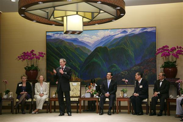 「家扶國際聯盟」董事長David Taylor一行,包括美國家扶會長Anne Goddard、丹麥家扶執行長Annette Ludeking、加拿大家扶執行長Mark Lukowski、澳洲家扶執行長Nigel Spence及蒙古兒童局局長Mijiddorj Togtokhnyam等人,上午由台灣家扶董事長林柏榕及內政部次長林慈玲陪同,前來總統府晉見總統,國家安全會議諮詢委員董國猷也在座。