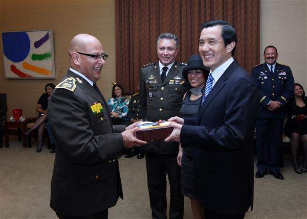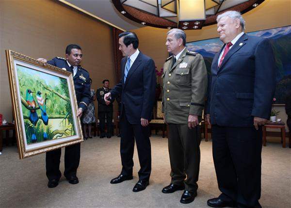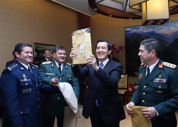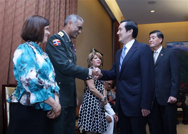 訪賓一行來自宏都拉斯、哥倫比亞、多明尼加、薩爾瓦多、瓜地馬拉、尼加拉瓜、巴拉圭及秘魯等國家,下午在國防部長高華柱的陪同下,前來總統府晉見總統,國家安全會議副秘書長葛光越也在座。