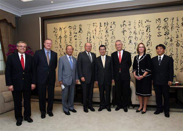 柯瀚校長等一行上午由教育部次長林聰明與卡內基美隆大學在台校友會會長王伯元陪同,前來總統府拜會副總統。