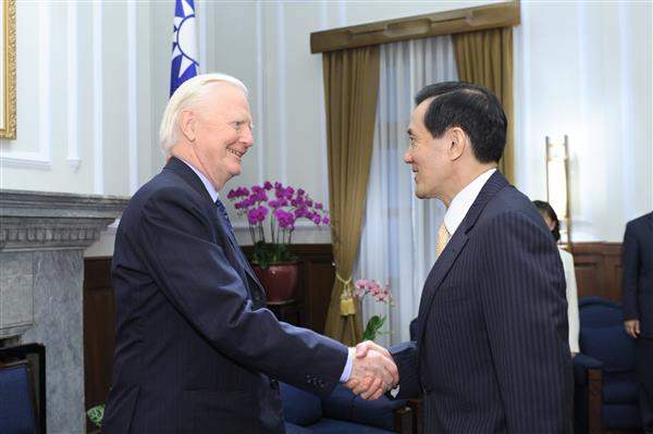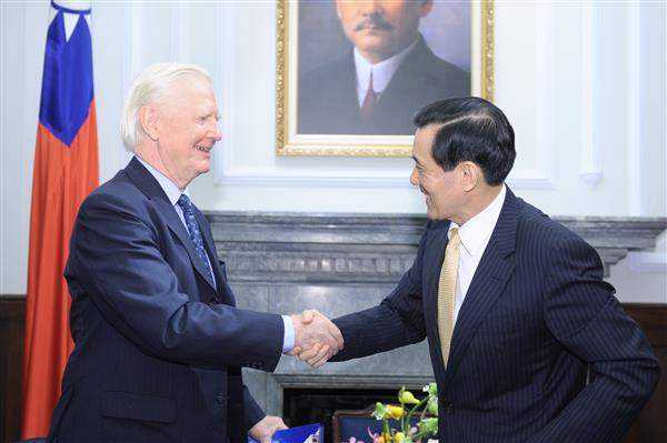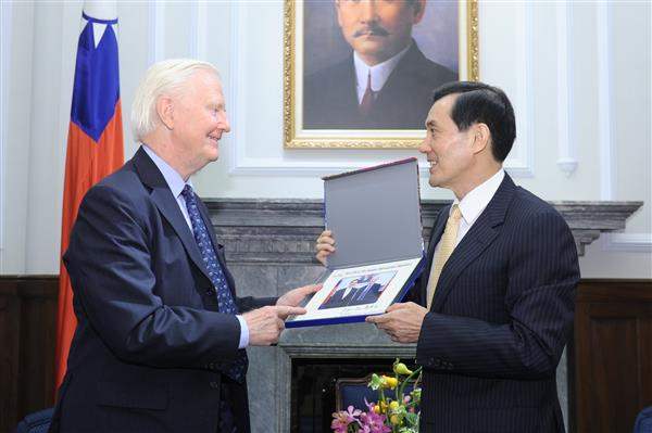 馬英九總統今天上午接見諾貝爾經濟學獎得主詹姆士.摩里斯博士( Sir. James A. Mirrlees),並與訪賓就台灣經濟發展現況交換意見。