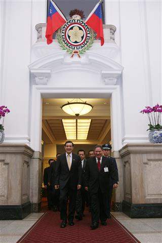 總統說,他上任後,一方面鞏固與各邦交國及友邦的邦誼,同時也積極改善對中國大陸的關係,減緩海峽兩岸緊張情勢,讓兩岸經貿交流制度化;今年6月底簽定「兩岸經濟協議」(ECFA)後,兩岸關係獲得進一步改善,同時也不影響我與邦交國的邦誼,希望台聖兩國能在既有基礎上,擴大並延續合作計畫與交流。