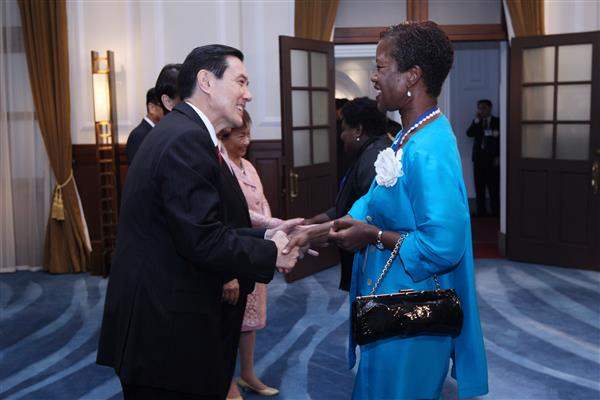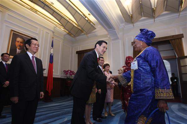 包括聖多美普林西比民主共和國總統梅尼士(S.E. Sr. Fradique Bandeira Melo de Menezes)、索羅門群島總理費立普(Danny Philip)伉儷及甘比亞共和國國會議長芮內(Elizabeth F. Y. Renner)等在內約216名外賓,上午9時25分到總統府參加致賀活動,馬總統伉儷與蕭副總統伉儷親切地與前來致賀的外賓們一一握手致意答謝。總統府秘書長廖了以、外交部長楊進添在場陪同。