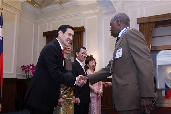 馬英九總統伉儷偕同蕭萬長副總統伉儷今天上午在總統府接受駐台使節及專程來台參加中華民國99年國慶活動的各國慶賀團、代表們,致賀我國雙十國慶。