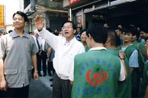 陳總統水扁先生今天中午前往新竹探訪獲選今年十大傑出愛心媽媽的戴張素梅女士,除了祝福戴媽媽母親節快樂外,也參觀由戴媽媽與戴耀賽母子共同創辦的愛恒啟能中心。