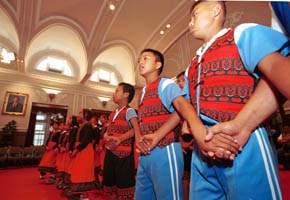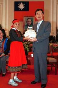 該校陳校長則感謝總統及總統府的熱心安排,使他們得以圓夢;另由學童獻唱具有原住民特色的歌謠兩首及呈贈象徵尊貴、興旺的陶甕給總統,表達謝意。