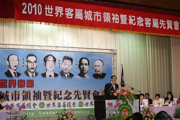 馬英九總統今天上午出席「2010世界客屬城市領袖暨紀念先賢會議」開幕式,並全程以客語致詞,期盼與會人士團結一心,繼續為客家族群的未來共同打拼。