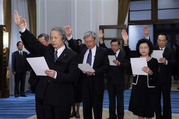 宣誓人員包括:司法院長賴浩敏、副院長蘇永欽、最高行政法院院長蔡進田、考試院考試委員張明珠、高永光、司法院秘書長林錦芳及考試院公務人員保障暨培訓委員會主任委員蔡璧煌。