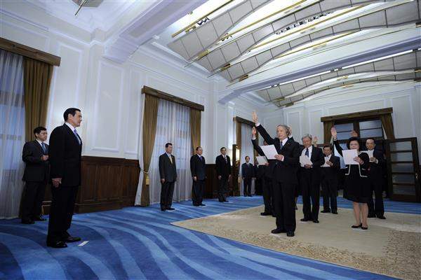 馬英九總統今天在總統府主持新任司法院及考試院政務人員宣誓典禮。
