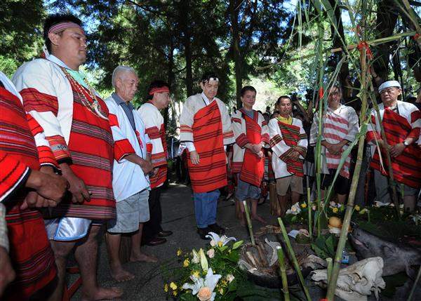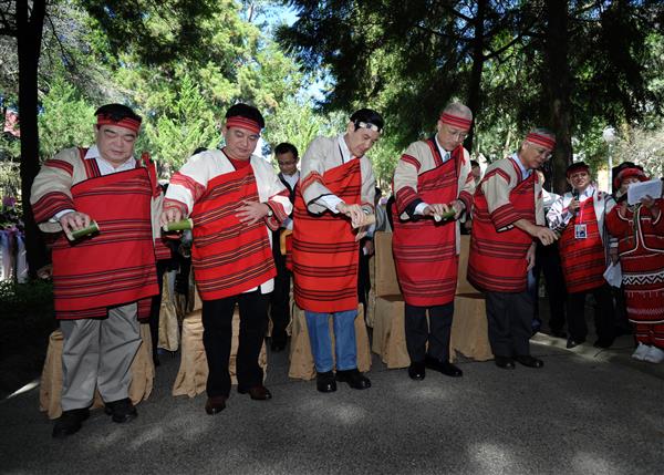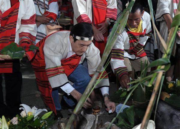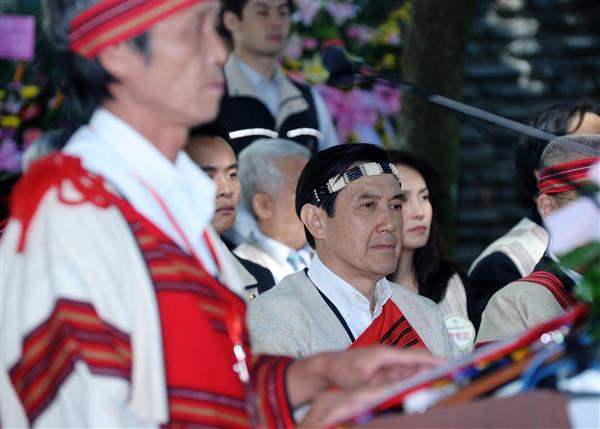 總統是在行政院長吳敦義、原住民族委員會主任委員孫大川等人陪同下,參與「霧社事件」遺族所舉行的賽德克族傳統祭典並擔任主祭,在引狼煙、檢視聖水、聖品及插石為盟等儀式後,與所有與會者一同舉杯飲用小米酒,象徵敬天、敬地、敬人的虔敬追思與感念。