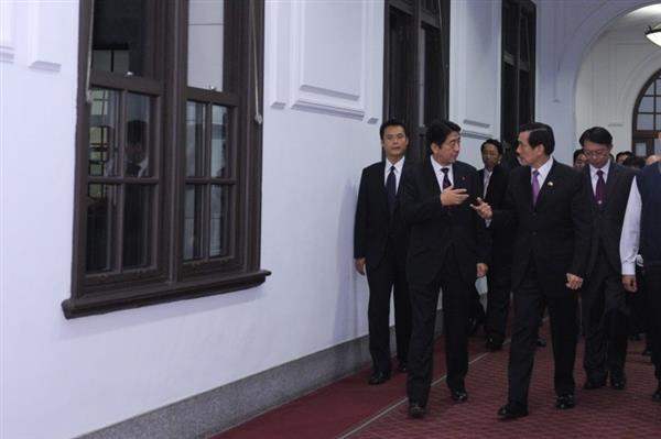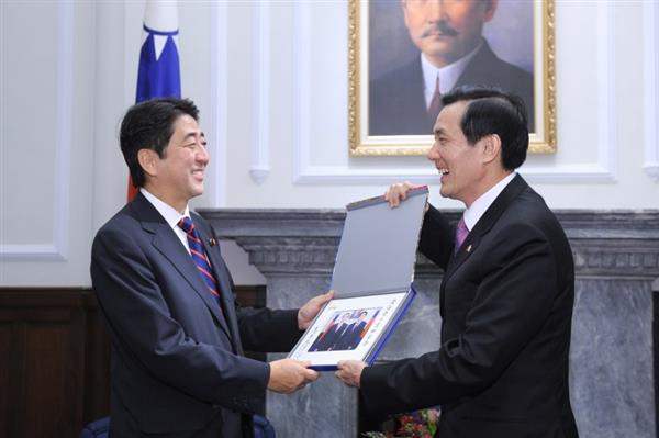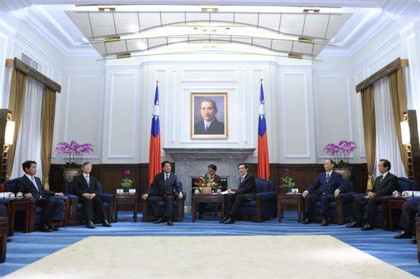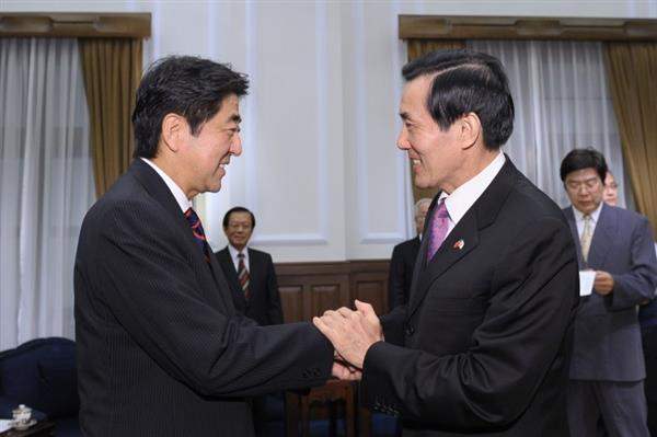 馬英九總統今天傍晚在總統府接見日本前首相安倍晉三眾議員一行,對搭乘首班台北松山—東京羽田機場直航班機來台的訪賓表達歡迎之意,也期盼未來持續強化雙方友好關係。