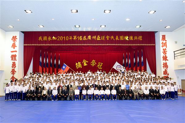 總統致詞時表示,我國第16屆亞洲運動會代表團即將出發前往廣州參加本月12日至27日所舉行的比賽,代表團成員總共有569人,參加32種競技項目,將與來自45個國家地區,一萬多位選手競賽。