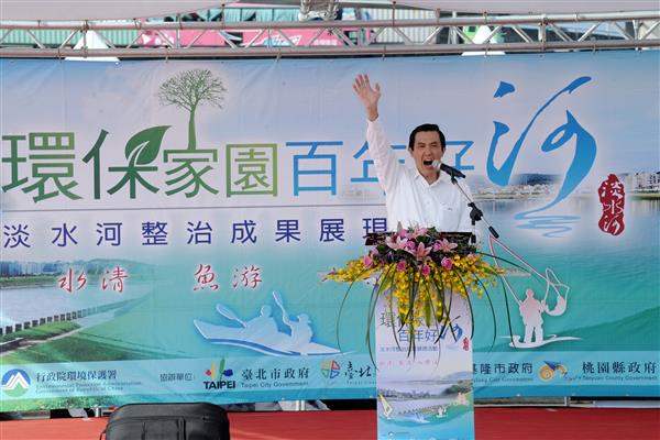 馬英九總統下午出席「環保家園百年好河-淡水河整治成果展現活動」時表示,淡水河流域經過北北基桃4縣市通力合作,今天終於達到30年來最乾淨的狀態,這要感謝所有人的努力,讓乾淨、健康的淡水河重現國人面前。
