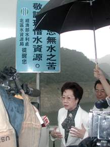 下午,副總統並前往石門水庫管理局聽取抗旱政策及清污簡報。適巧遇到下雨,副總統高興地表示,她沒帶來口水,而是帶來雨水。