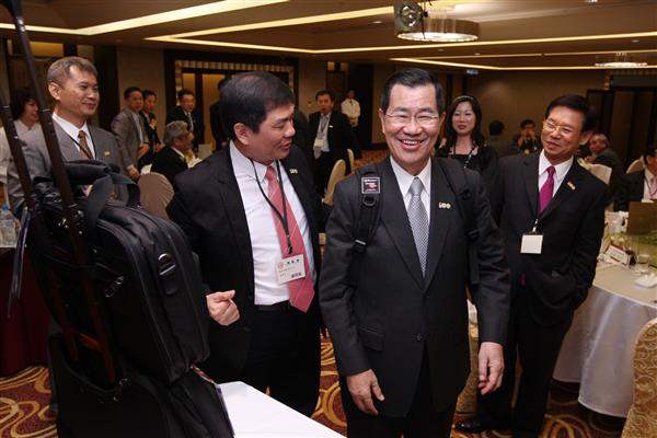蕭萬長副總統今天晚間由「億載會」會長謝明振等人陪同出席該會第8屆第5次例會,副總統推崇該會是台南地區最具指標性的團體,並說明「兩岸經濟協議」(ECFA)生效後,政府將以更開放、更鬆綁的態度發展台灣經濟,且目前已有許多外商來台投資,期許該會成員把握台灣經濟轉型期擴展商機。