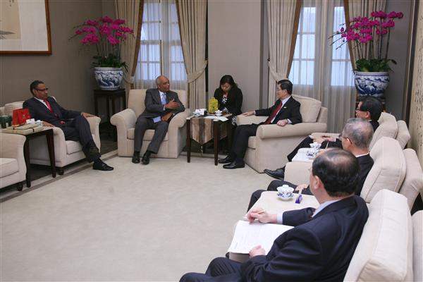 訪賓下午由經濟部次長梁國新陪同,前來總統府晉見副總統。