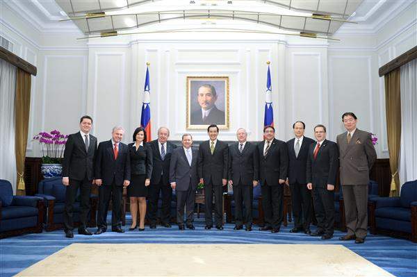 訪華團一行由國會黨團副主席艾盟率領,上午由外交部次長沈呂巡陪同,前來總統府晉見總統,國家安全會議副秘書長劉志攻也在座。