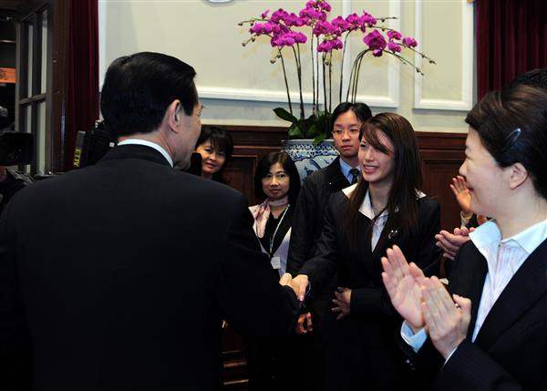 最後,總統也期許選手們繼續努力,在明年中國大陸深圳舉辦的「世界大學運動會」,以及後年的倫敦奧運會,全力以赴,為台灣爭取更大的榮耀。