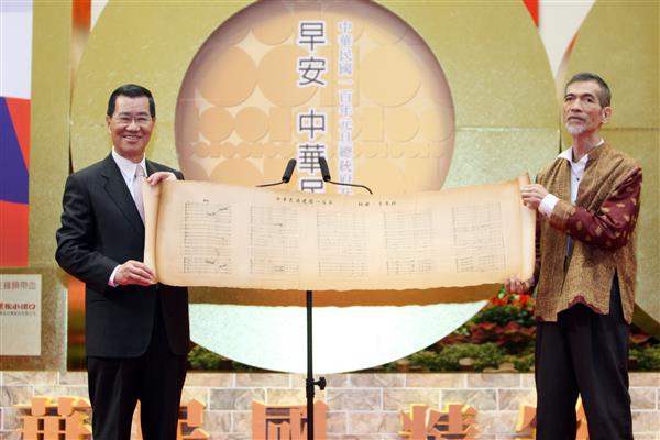 副總統指出,節目內容包括舉辦100對新人聯合婚禮,由馬總統擔任婚禮證婚人;八大交響樂團現場演奏;尤其,現場演奏的國歌是由國寶級音樂大師李泰祥先生特別重新編曲,深具意義。