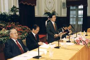 在上次會議中,我們所確認的「行政院組織調整方案」相關配套法案,已經由行政院院會及考試院院會分別通過,正送請立法院審議。如今,政府改造的列車,又將抵達「順應民意的國會改造」這一站。阿扁相信,若能在朝野政黨以及國人的支持下,順利完成國會改造,則我們將朝向終點站,也就是「具全球競爭力的活力政府」,大幅邁進。