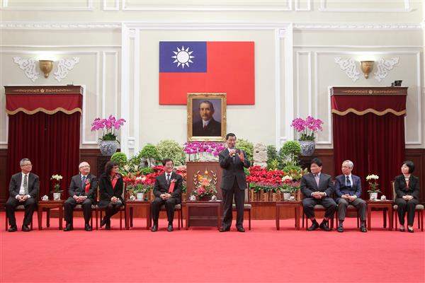 蕭萬長副總統今天上午接見「第12屆國家建築金質獎」得獎建築企業代表,並對得獎者表達祝賀之意。