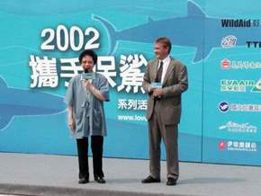 副總統在「二○○二攜手保鯊魚」系列活動啟動儀式致詞時,以她個人在就任副總統後不再食用魚翅,並帶動影響總統及行政機關禁食魚翅的例子表示,居上位的人,如果能夠帶頭關懷生命,為民表率,相信對保護鯊魚的活動有示範作用,而且達到更好效果。