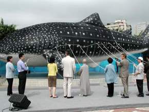 致詞後,副總統並與贊助企業代表一起以釋放鯊魚汽球方式揭開序幕,象徵保鯊行動的開始。