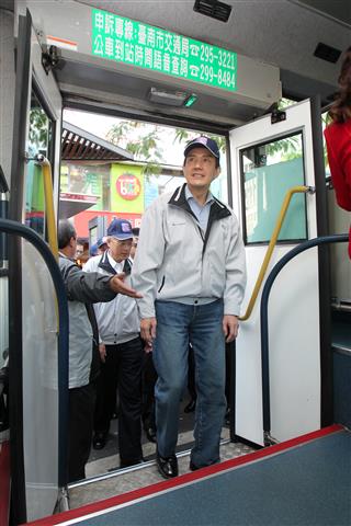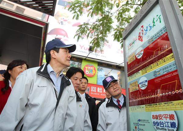 隨後,總統由行政院長吳敦義、交通部長毛治國及台南市長賴清德等陪同,搭乘99台江線及88安平線公車,參訪赤崁樓及億載金城,親身感受交通部觀光局所推動「台灣好行旅遊服務計畫」的便利性,沿途並受到旅客與民眾熱情歡迎。