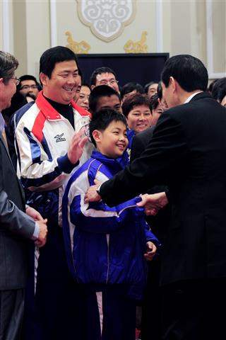 馬英九總統今天下午接見「99年第8屆總統盃慢速壘球錦標賽」全國總冠軍隊伍,並期許這項活動能進一步提升國內的運動人口。