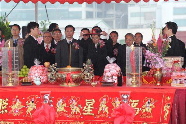 副總統隨後與「台塑集團」總裁王文淵、林口長庚醫院院長王正儀、行政院原子能委員會主任委員蔡春鴻及桃園縣長吳志揚等人共同參加動土儀式,上香祝禱工程圓滿順利。