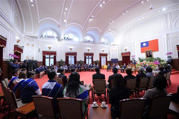訪賓一行由台灣連鎖暨加盟協會理事長潘進丁及經濟部次長梁國新陪同,前來總統府晉見總統。