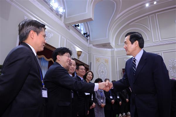 馬英九總統今天下午接見「第13屆全國商店傑出服務店長」暨所屬企業主,對於所有獲獎人員經過嚴格徵選脫穎而出,表達肯定與祝賀之意。