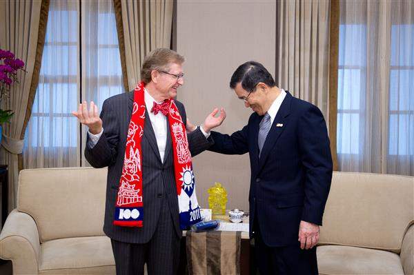 訪賓一行上午由「俄亥俄州立大學在台校友會」理事長李隆盛與秘書長李懿芳陪同,前來拜會副總統。