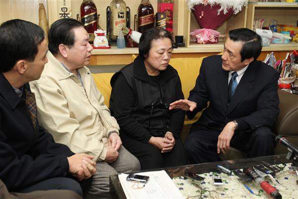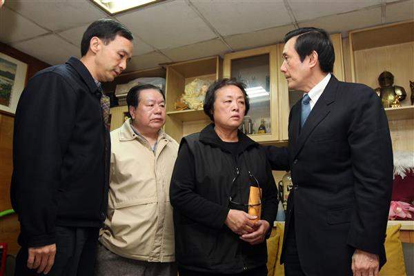 馬英九總統今天上午前往新北市永和區探視江國慶家屬,代表政府向其家人表示慰問並道歉。