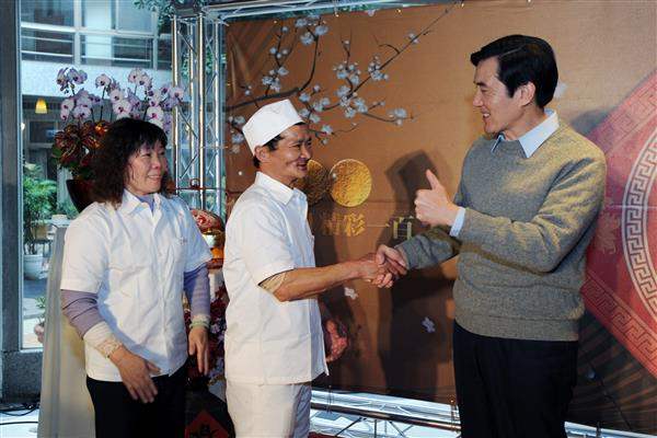 今天英九還邀請了許多同胞來表達他們的祝福,他們是天主教「至善老人安養護中心」徐震老先生來親書對聯、基督教復興堂「傳愛水餃工作坊」單親媽媽以水餃排出愛心拼盤祝賀新年,「愛維養護中心」簡梅芳女士兔年畫作祝福新年。